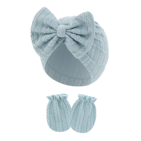 Copricapo per bambini europei e americani all'ingrosso cappello fetale per bambini di colore solido modello di orecchio di grano cappello Anti-afferrare guanto Set